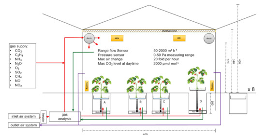 The design of crop gas exchange facilities is always a compromise between the universality and accuracy of the respective system and the technical possibilities of a suitable solution. While small facilities (e.g., handheld IRGA or single plant chambers) were designed for repeated use in many experimental measurements, all reported large greenhouse-based gas-exchange systems were designed for certain experimental question and “disappeared” soon after.
