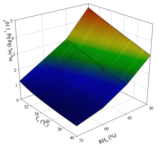 The reduction in mw/ma due to the increase in To is more pronounced as the climate becomes drier. The intensity of the decrease in the mw/ma value due to the increased RHo is lower as the To increases.