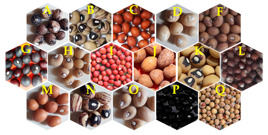 Seed morphological genetic diversity among different landraces of Bambara groundnut (Note: A = Bidi, B = Maiki, C = Bidilalle, D = Karu, F = Maizane, G = Doii, H = Ex-Sokoto, I = Jatau, J = Bidiyashi, K = Hawayenzaki, L = Zabuwa, M = Yar-Gombe, N = Maibargo, O = Giwa, P-Dunabaki, Q = Cancaraki).