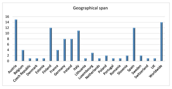 Figure 3 shows the geographical span of the technological solutions. It is worth noting that most of the basic technologies, such as cellular communications, are available through multiple providers in each country. Therefore, these cases were simply grouped and labeled as “Worldwide” in the chart. Countries of the project consortium partners might seem overrepresented. That is due to the method used in the survey, where direct contact with local stakeholders provided significant number of inputs. Moreover, high scores of Austria, Italy, and Spain are due to the fact that certain companies offer a wide palette of tools and solutions, quickly adding to the statistics.
