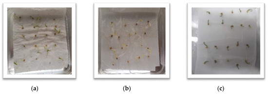 Germination of tomato seeds after 5 days of application: (a) negative control; (b) positive control (BL); (c) epimeric mixture 4a/4b. BR concentration was 1 × 10−8 M.
