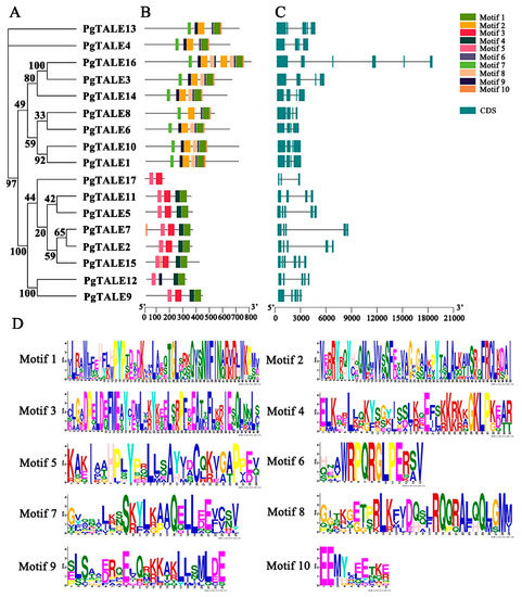2.3. Construction of Phylogenetic tree of PgTALE Gene Family