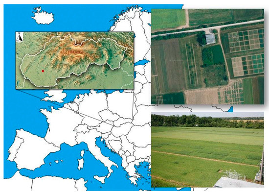 The research was conducted at the experimental site of the Slovak University of Agriculture in Nitra located in Dolná Malanta approximately 5 km north-east from the city of Nitra (Slovakia) (48°19′00″ N; 18°09′00″ E) (Figure 1). The continuous biochar field experiment was established in 2014 to examine the effect of biochar application on greenhouse gas emissions [13,36], soil quality [14,37,38,39,40,41,42,43,44] and crop yields [34,45,46]. The soil was classified as Haplic Luvisol according to World Reference Base [47] with the initial soil organic carbon content of 9.13 g kg−1, pH of 5.71 (slightly acidic) and silty loam soil texture. The site was used for conventional agricultural production prior to establishment of the experiment.
