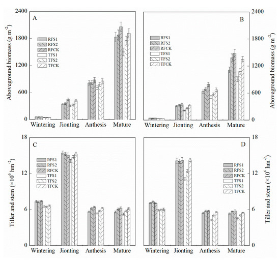 - Meng, W.; Yu, Z.; Zhao, J.; Zhang, Y.; Shi, Y. Effects of supplemental irrigation based on soil moisture levels on photosynthesis, dry matter accumulation, and remobilization in winter wheat (Triticum aestivum L.) cultivars. Plant Prod. Sci. 2017, 20, 215–226. [Google Scholar] [CrossRef]