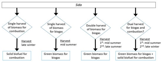 Once planted, S. hermaphrodita can be productive over a rotation of 10 years or more, and some authors have suggested that it can remain highly productive for 15–20 years []. Recently, Jablonowski et al. [] produced a BBCH-code for S. hermaphrodita (further details in Appendix B) to help identify its different phenological stages, and allow for more accurate comparisons between field trials. There is limited information regarding the invasiveness of S. hermaphrodita. However, in the Netherlands an ecological risk assessment concluded that it presented a low risk [].
