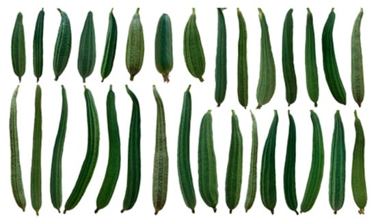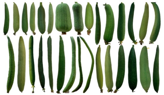- Dhillon, N.P.S.; Sanguansil, S.; Singh, S.P.; Masud, M.A.T.; Kumar, P.; Bharathi, L.K.; Yetisir, H.; Huang, R.; Canh, D.X.; McCreight, J.D. Gourds: Bitter, bottle, wax, snake, sponge and ridge. In Genetics and Genomics of Cucurbitaceae; Grumet, R., Katzir, N., Garcia-Mas, J., Eds.; Springer: Gewerbestrasse, Switzerland, 2017; pp. 155–172. [Google Scholar]