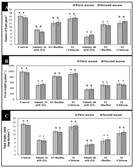 - Abdelaal, K.A.A.; EL-Maghraby, L.M.; Elansary, H.; Hafez, Y.M.; Ibrahim, E.I.; El-Banna, M.; El-Esawi, M.; Elkelish, A. Treatment of Sweet Pepper with Stress Tolerance-Inducing Compounds Alleviates Salinity Stress Oxidative Damage by Mediating the Physio-Biochemical Activities and Antioxidant Systems. Agronomy 2020, 10, 26. [Google Scholar] [CrossRef]