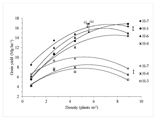 - Liu, W.; Tollenaar, M. Response of yield heterosis to increasing plant density in maize. Crop Sci. 2009, 49, 1807–1816. [Google Scholar] [CrossRef]
