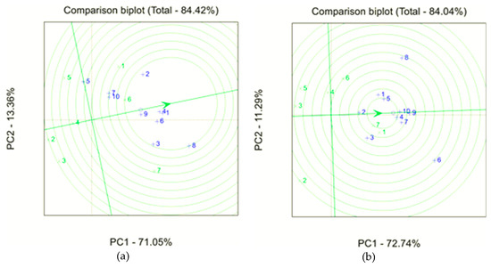 - Yan, W. Singular-value partition in biplot analysis of multienvironment trial data. Agron. J. 2002, 94, 990–996. [Google Scholar] [CrossRef]