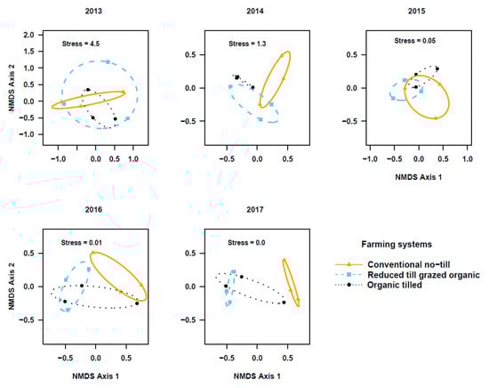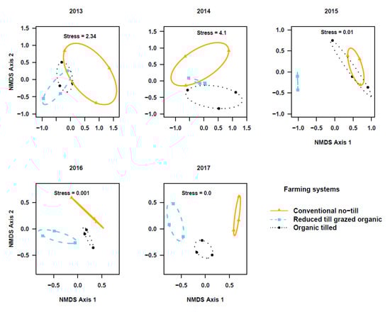 - Patterson, E.S.P.; Sanderson, R.A.; Eyre, M.D. Soil tillage reduces arthropod biodiversity and has lag effects within organic and conventional crop rotations. J. Appl. Entomol. 2019, 143, 430–440. [Google Scholar] [CrossRef]