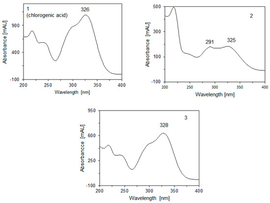 UV-DAD (diode array detector) spectra of the main phenolic compounds from Jerusalem artichoke ((1–3)—number of the peaks on the chromatogram).