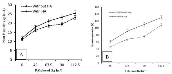 | Phosphorus (kg P2O5 ha−1) | Humic Acid (kg ha−1) | Plant Height (cm) | Spike Length (cm) | Grains Spike−1 | 1000-Grain Weight (g) | Grain Yield (kg ha−1) | Straw Yield (kg ha−1) | Biological Yield (kg ha−1) | Harvest Index (%) | Plant P Concentration (g kg−1) | P Uptake (kg ha−1) |