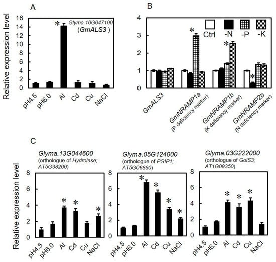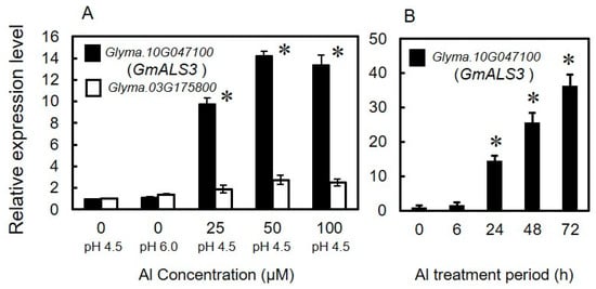 Agrahari, R.K.; Kobayashi, Y.; Borgohain, P.; Panda, S.K.; Koyama, H. Aluminum-Specific Upregulation of GmALS3 in the Shoots of Soybeans: A Potential Biomarker for Managing Soybean Production in Acidic Soil Regions. Agronomy 2020, 10, 1228. https://doi.org/10.3390/agronomy10091228