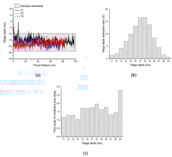 28]. The specific target tillage depth should be considered to prevent a hardpan layer forming in the plow layer. Therefore, it is very important to measure the formation depth of the hardpan and set the tillage depth appropriately.