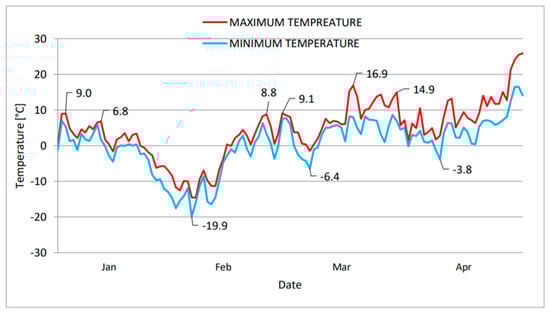 Minimum and maximum temperatures from January to April 2012.