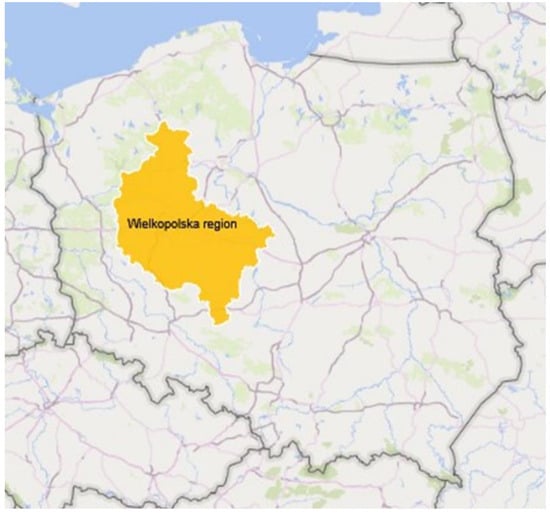 The study was conducted in 2015–2017 on 15 agricultural farms. The studied farms are located in the north-western part of Poland, at 51°–52° north latitude and 15°–19° west longitude in the Wielkopolska region (Figure 1, Table 1), which is known as one of the most productive areas in the country in terms of agricultural production []. The farms were selected from a farm group that collaborates with Wielkopolski Agricultural Advisory Centre in Poznań. Their selection was determined by the cultivation of winter wheat under one of the following tillage systems: conventional tillage (CT), reduced tillage (RT), and no-tillage (NT). The characteristics of tillage systems are presented in Table 2. Five farms for each tillage system were studied. Face-to-face interviews with the farmers provided detailed data for the analysis. The interview covered questions about farm characteristics and wheat production including tillage practices, consumption of energy and material inputs, agricultural machinery (type of a machine, lifetime of a machine, total machine weight), and duration of technological operations. Data sets collected from the farms were entered into a computer database using Microsoft Excel®. Table 3 shows the production characteristics of winter wheat cultivation in three tillage systems of the studied farms.