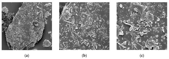 Scanning electron micrographs of clinoptilolite zeolite at (a) 10 μm; (b) 4 μm; and (c) 2 μm.