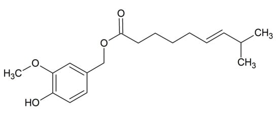 - Cordell, G.A.; Araujo, O.E. Capsaicin: Identification, Nomenclature, and Pharmacotherapy. Ann. Pharmacother. 1993, 27, 330–336. [Google Scholar] [CrossRef] [PubMed]