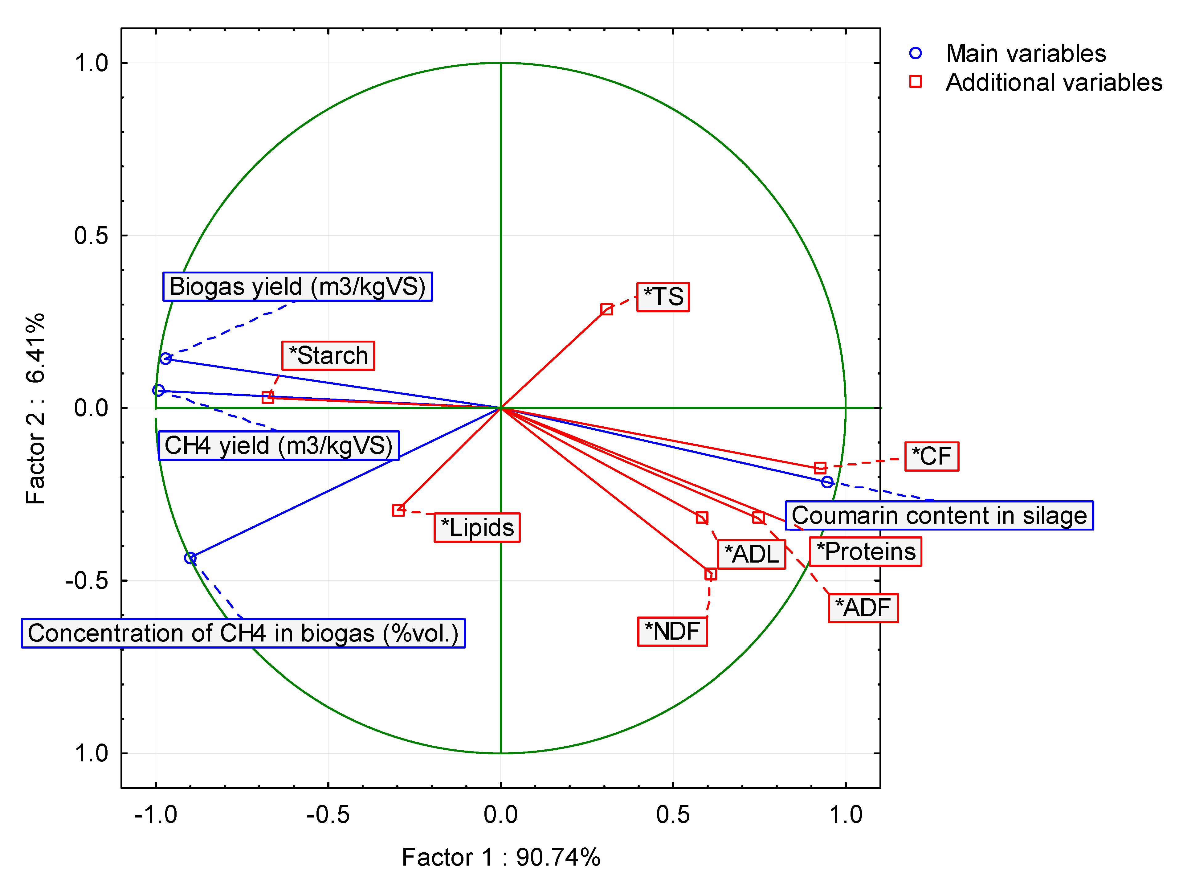 | Biogas Yield | Meth. Yield | Meth. in Biogas | TS | Proteins | Lipids | CF | Starch | ADF | NDF | ADL | Coumarin | |