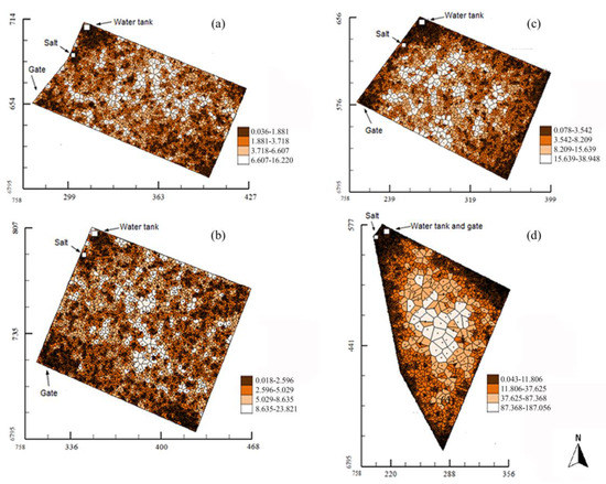 - Vieira, S.R.; Hatfield, J.L.; Nielsen, D.R.; Biggar, J.W. Geostatistical theory and applications to variability of some agronomical properties. Hilgardia 1983, 51, 1–75. [Google Scholar] [CrossRef]
