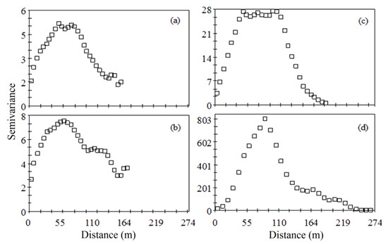 in which N(h) indicates the number of pairs of measured values, Z (xi) and Z (xi + h), separated by a distance vector h. Z (xi) and Z (xi + h) are values of the ith observation of a regionalized variable collected at positions xi and xi + h (i = 1, ..., n), separated by vector h [37,38,41].
