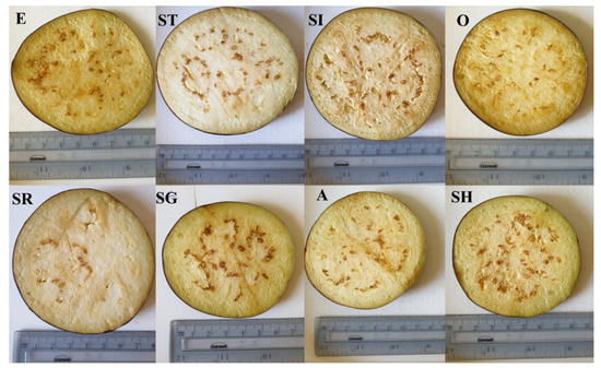 It seems that tomato rootstocks had lower browning degree and colour difference value than self-rooted and self-grafted plants, and fruit harvested from these combinations oxidized less than others (Table 3). High oxidation potential is expected due to the high phenolic compound content of the eggplant. Moreover, it may be influenced by many factors, e.g., scion genotype, rootstocks, and environmental conditions. Moncada et al. [34] and Sabatino et al. [6] reported that grafting eggplant onto S. torvum had little or no effect on pulp browning. However, other rootstocks had different reactions; for instance, S. paniculatum and S. macrocarpon showed lowest [6], while S. aethiopicum gave the highest oxidation potential in eggplant [3]. Seed number and fruit size may lead to different colour and oxidization in fruit pulp after cutting. A negative correlation between the browning index and fruit size, and positive relation with seed number, has been reported by Radicetti et al. [36].