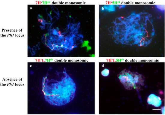 - Silkova, O.G.; Kabanenko, Y.N.; Loginova, D.V. The effect of wheat-rye substitution on chromosome elimination: An analysis of univalents’ behavior in wheat meiosis with dimonosomy and tetramonosomy. Russ. J. Genet. 2014, 50, 245–252. [Google Scholar] [CrossRef]