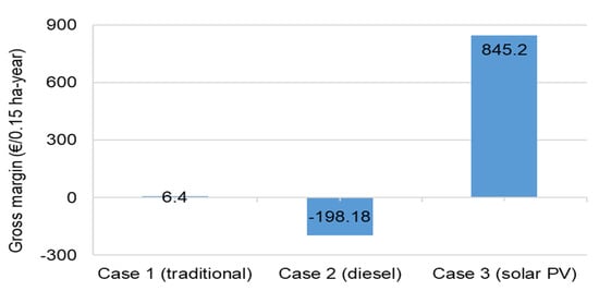 APV’s joint benefits for electrification and irrigation are presented by Ibrik [24]. By taking the arid region case at two rural communities in Palestine, the author analyzed how the diesel (as a fuel) dependency could be minimized by using such APV systems as extended solar microgrids. Pascaris et al. [25] analyzed the benefits and challenges that farmers perceive with the use of APV systems. Unlike the mainstream studies on APV, which are mostly project or pilot plant-based analyses, this study highlighted the generic barriers in the agriculture sector. The authors suggested the relevant stakeholders address these barriers for the successful and widespread implementation of APV systems. Moreda et al. [23] analyzed the profitability of a hypothetical APV system deployed on irrigated arable lands of southwestern Spain. The authors used the internal rate of return (IRR) as an economic indicator to check the profitability for different scenarios of crop types and solar modules orientation (south vs. southeast). Calculated IRR values were between 3.8% and 5.6%.