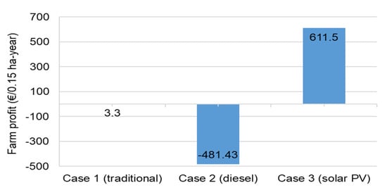 In this case, the benefits to the farmer will not change much in comparison to the results presented above in Section 4.4 because this does not lead to significant extra cost for irrigation electricity (only a very small fraction of the APV electricity goes for irrigation of 0.15 ha land considered).
