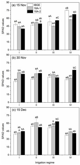 | Irrigation Regimes | Chlorophyll a (mg g−1) | ||||||||