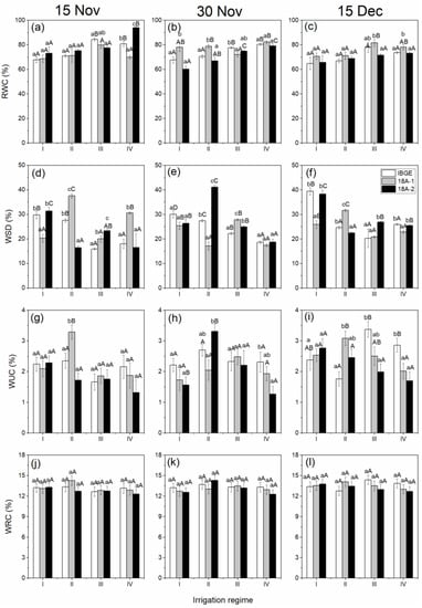 | IV: Irrigations at tillering, booting, flowering, and grain filling stages | 15 November | 308 | 8 | 33 | 300 | 275 | 20 | 20 | 328 | 328 | 328 |