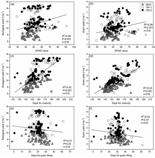3.5. Correlations of Biological and Grain Yields with Crop Traits