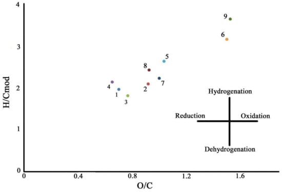 | Sample ID | C, % | H, % | N, % | O, % | C/N | H/C | O/C | H/Cmod |