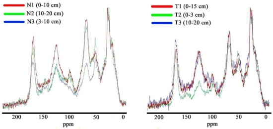 - Lodygin, E.D.; Beznosikov, V.A.; Vasilevich, R.S. Molecular Composition of Humic Substances in Tundra Soils (C-13-NMR Spectroscopic Study). Eurasian Soil Sci. 2014, 47, 400–406. [Google Scholar] [CrossRef]