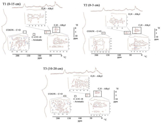 3.3. H-13C HETCOR NMR Spectroscopy of Studied Soils