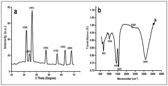 - Mahamuni, P.P.; Patil, P.M.; Dhanavade, M.J.; Badiger, M.V.; Shadija, P.G.; Lokhande, A.C.; Bohara, R.A. Synthesis and characterization of zinc oxide nanoparticles by using polyol chemistry for their antimicrobial and antibiofilm activity. Biochem. Biophys. Rep. 2019, 17, 71–80. [Google Scholar] [CrossRef] [PubMed]