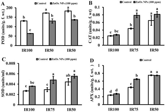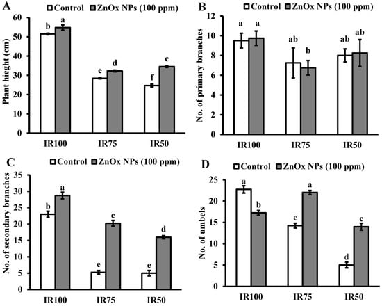 Khan, M.T.; Ahmed, S.; Shah, A.A.; Noor Shah, A.; Tanveer, M.; El-Sheikh, M.A.; Siddiqui, M.H. Influence of Zinc Oxide Nanoparticles to Regulate the Antioxidants Enzymes, Some Osmolytes and Agronomic Attributes in Coriandrum sativum L. Grown under Water Stress. Agronomy 2021, 11, 2004. https://doi.org/10.3390/agronomy11102004
