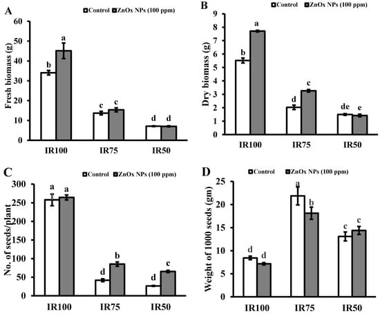 - Adrees, M.; Khan, Z.S.; Hafeez, M.; Rizwan, M.; Hussain, K.; Asrar, M.; Alyemeni, M.N.; Wijaya, L.; Ali, S. Foliar exposure of zinc oxide nanoparticles improved the growth of wheat (Triticum aestivum L.) and decreased cadmium concentration in grains under simultaneous Cd and water deficient stress. Ecotoxicol. Environ. Saf. 2021, 208, 111627. [Google Scholar] [CrossRef] [PubMed]