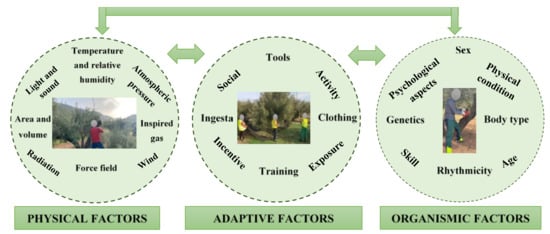 Rohles described all the interrelationships that affect workers in the agricultural sector. He called them “physical factors, organic factors, and adaptive factors” (Figure 4) [73].