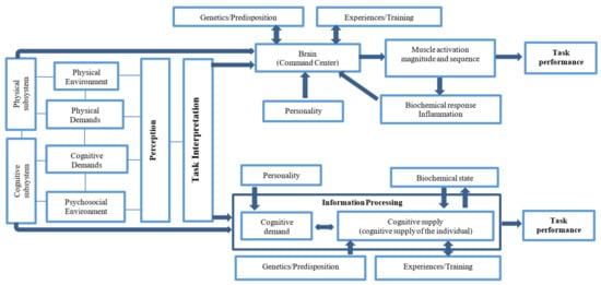 More recently, this relationship between the factors has been interpreted by Marras and Hancock as the interaction between two subsystems—the physical and the cognitive (Figure 5) [74].