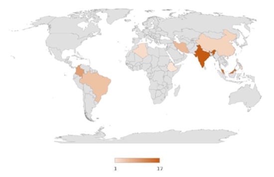 Figure 7 is shown in order to answer the first question posed in the objective: “In which countries has MSD in agriculture been researched?”.