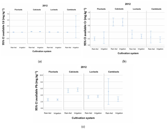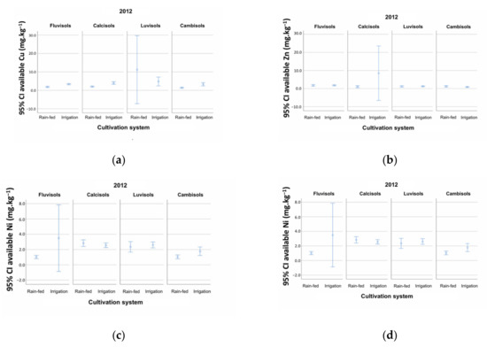 | (c) | Cu (mg kg−1) | 2012 | n.a. | Rainfed | n.a. | n.a. | 513 | 1.68 | T (1294): −0.362 | 0.717 | ||||
