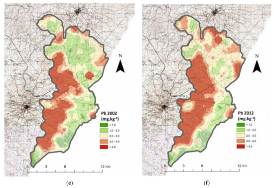 | Pb (mg kg−1) | 2002 | n.a. | n.a. | 620 | 2.55 | X: 1.201 | 0.026 | 675 | 6.70 | 1295 | 2.71 | U: 763,037,000 | 0.000 | |