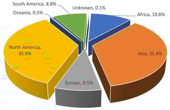 - United States Census Bureau. Place of Birth for the Foreign-Born Population of the United States. American Community Survey. 2019 Estimates. Available online: https://data.census.gov/cedsci/table?tid=ACSDT1Y2016.B05006&q=ACSDT1Y2016.B05006 (accessed on 9 August 2021).