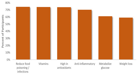 Associated with the health characteristics of spicy peppers, survey participants were provided six potential health-related claims that may be made about spicy peppers. The claims included [10,11,12]: