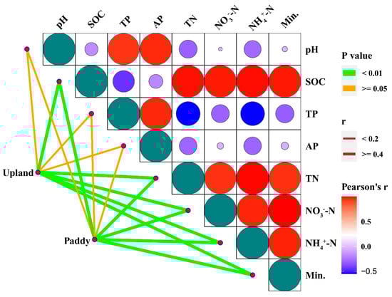 Correlation heatmap analysis between soil properties and the net N mineralization in upland and paddy soils.
