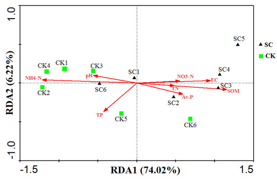 | SOM (g·kg−1) | 3.83 ± 0.29a | 2.43 ± 0.88b | 13.659 | <0.01 |