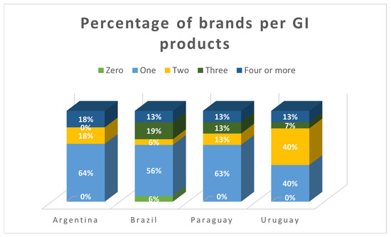 Percentage of brands per GI products in each country of Mercosur. Own elaboration.