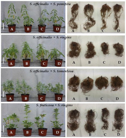 | S. officinalis × S. ringens | normal | 27.5 cd | 9.0 ab | 10.1 b | 87.4 ab | 34.6 a | 12.9 cd | 2.7 c | 12.9 a | 3.4 b | 3.8 b |