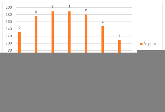 In our experiment, a lower dose of the mineral fertiliser resulted in lower soil micronutrient contents, except for iron. According to Kleiber et al. [32], low soil nutrient contents (especially micronutrients such as Fe, Cu, Zn, Mn, and B) may be caused by low soil pH and low salinity. These factors may have been the causes of the low contents of most micronutrients in our experiment.